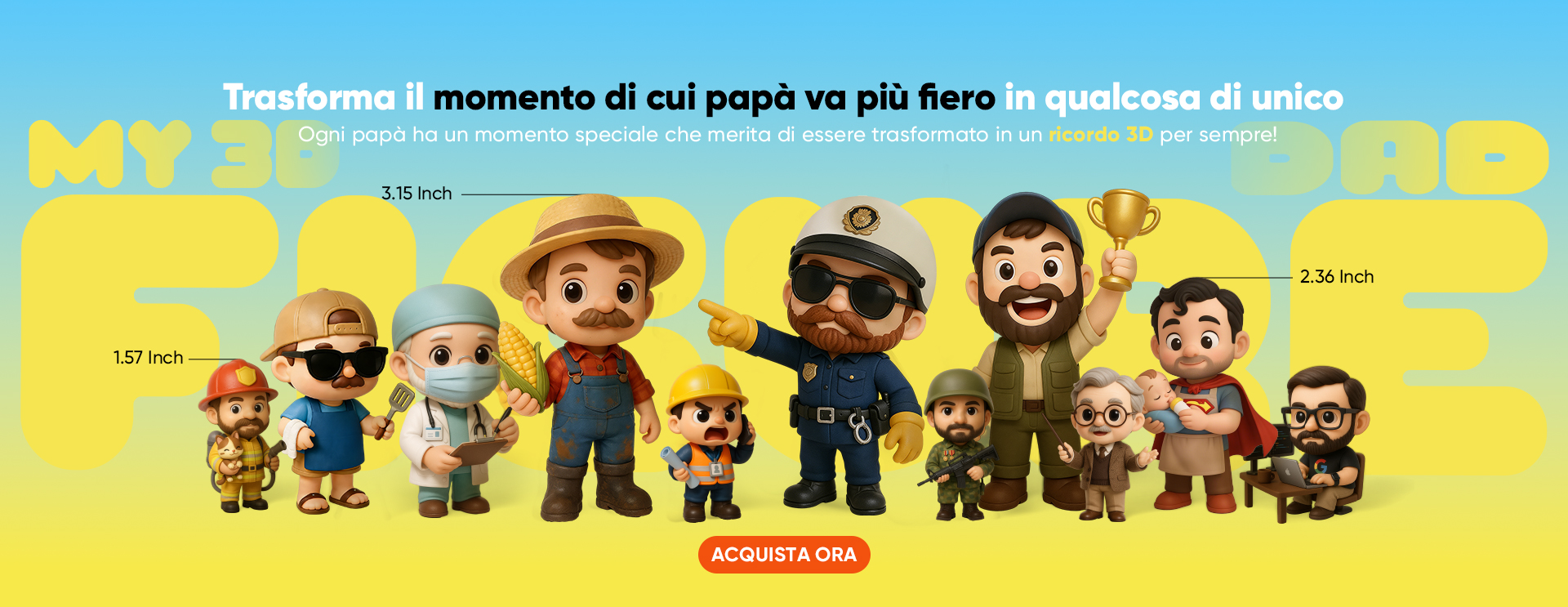 - ✔️ 100% Personalizzate – Carica una foto e la ricreeremo come una simpatica miniatura 3D.