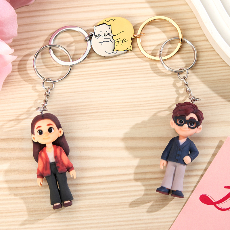 Portachiavi Con Statuetta 3d Personalizzata Da Foto, Coppia Di Gatti, Portachiavi Abbinati, Regalo Romantico Personalizzato Per Coppie, San Valentino, Anniversario